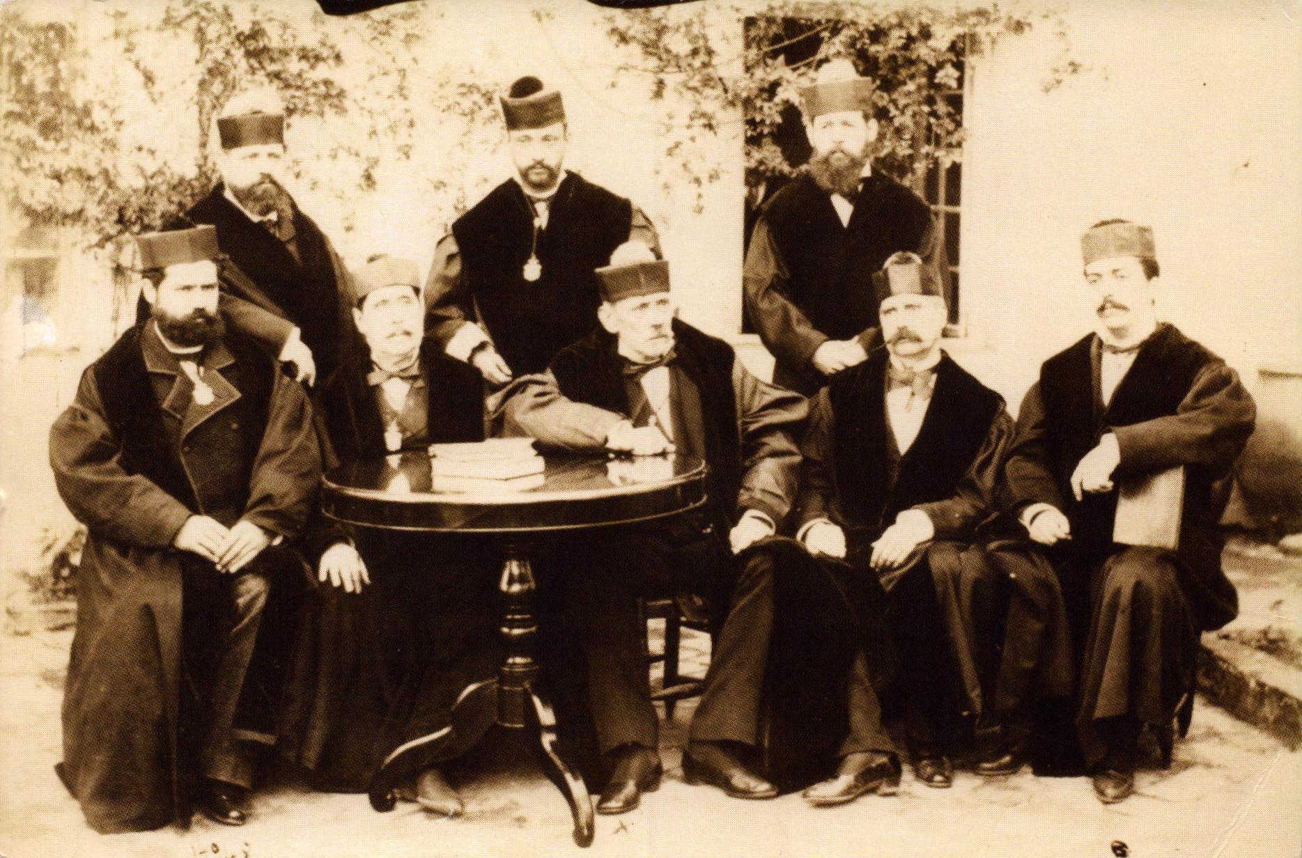 En la fotografía se identifica a una parte del claustro correspondiente al curso académico 1880-1881. Sentados aparecen: