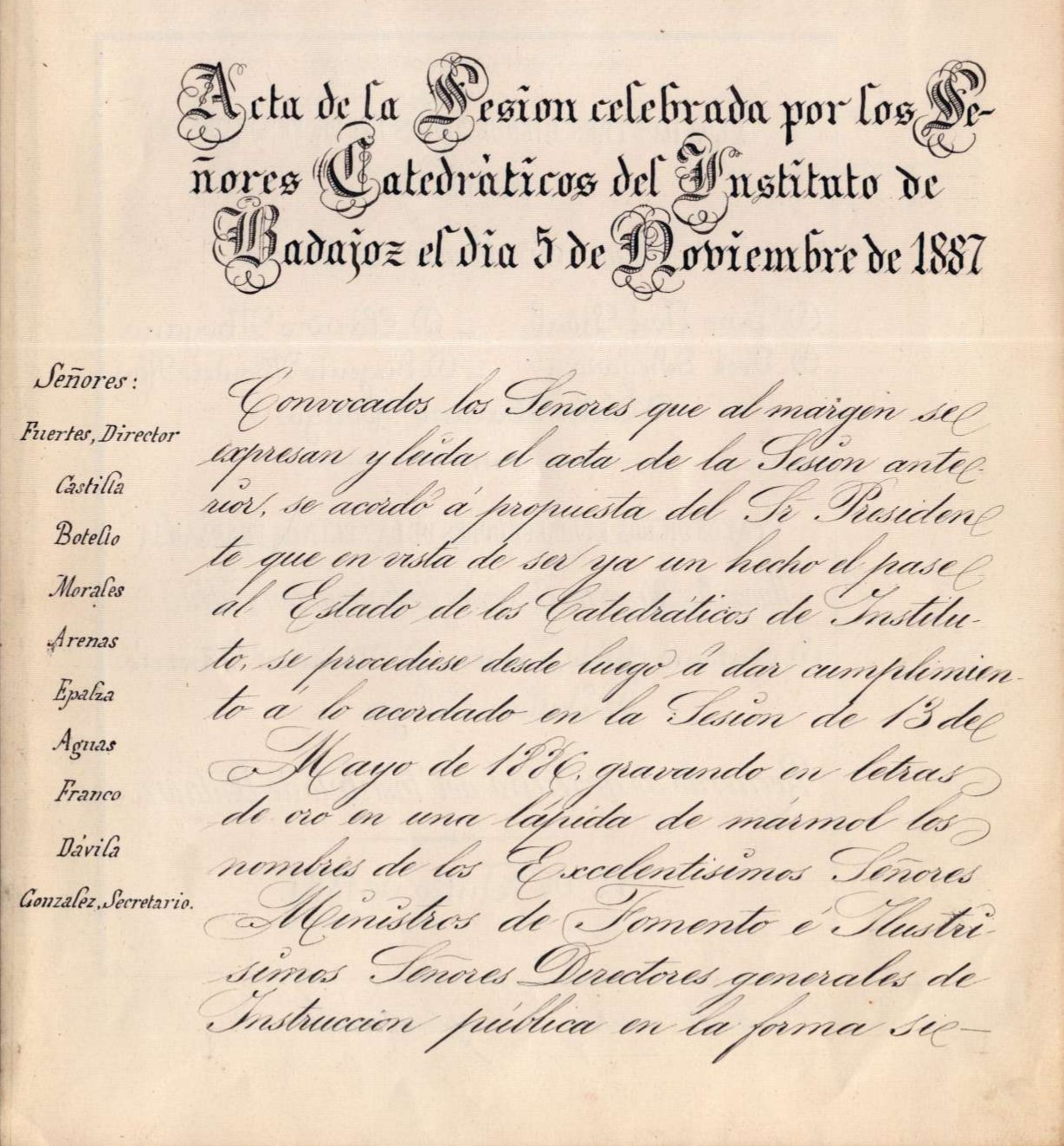 CURIOSIDAD DEL MES: El Instituto de Badajoz homenajeó al ministro Pedro J. Pidal con un acta de gratitud de 1888