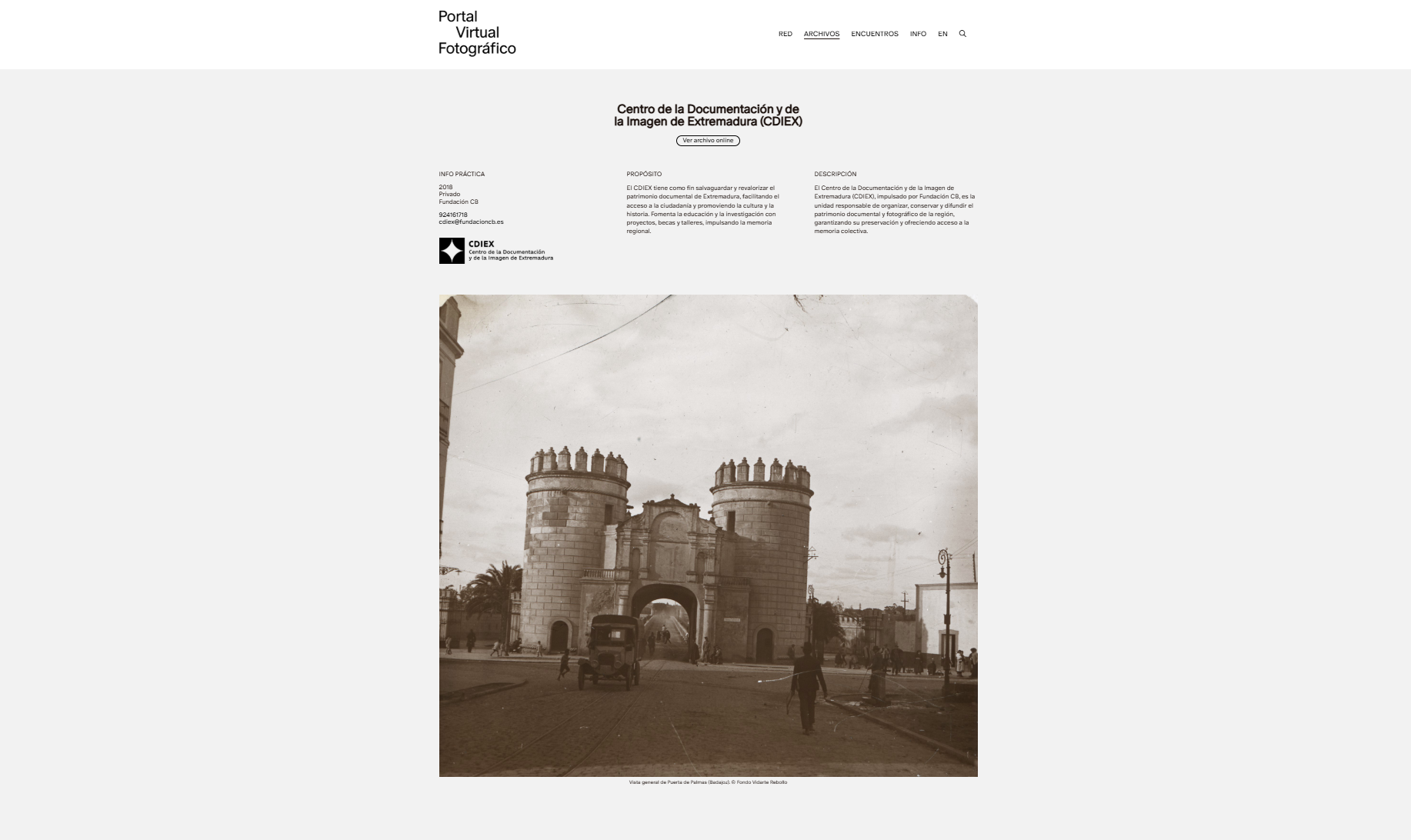 El Centro de la Documentación y de la Imagen de Extremadura (CDIEX), centro dedicado a organizar, conservar y difundir el patrimonio documental y fotográfico de la región, ha sido recientemente incorporado al Portal Virtual Fotográfico, la plataforma digital colaborativa que reúne y pone en valor los archivos y agentes del mundo de la fotografía en España.